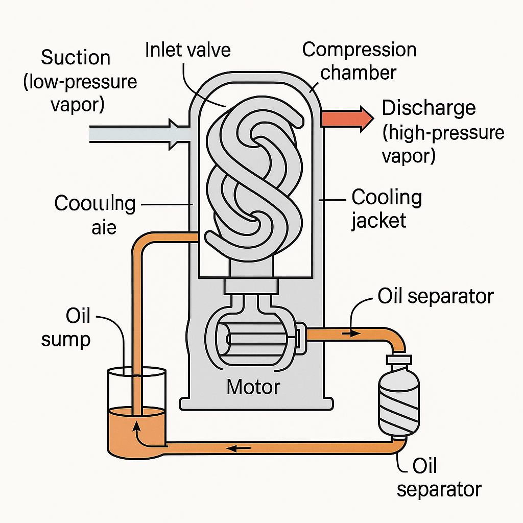 | ZR / ZP / ZS (Scroll HVAC) | R410A, R407C, (A2L نسل جدید) | Rooftop/Chiller، HVAC | VFD | صدای کم، COP فصلی خوب؛ حداقل فرکانس امن روغنکاری را رعایت کنید. |