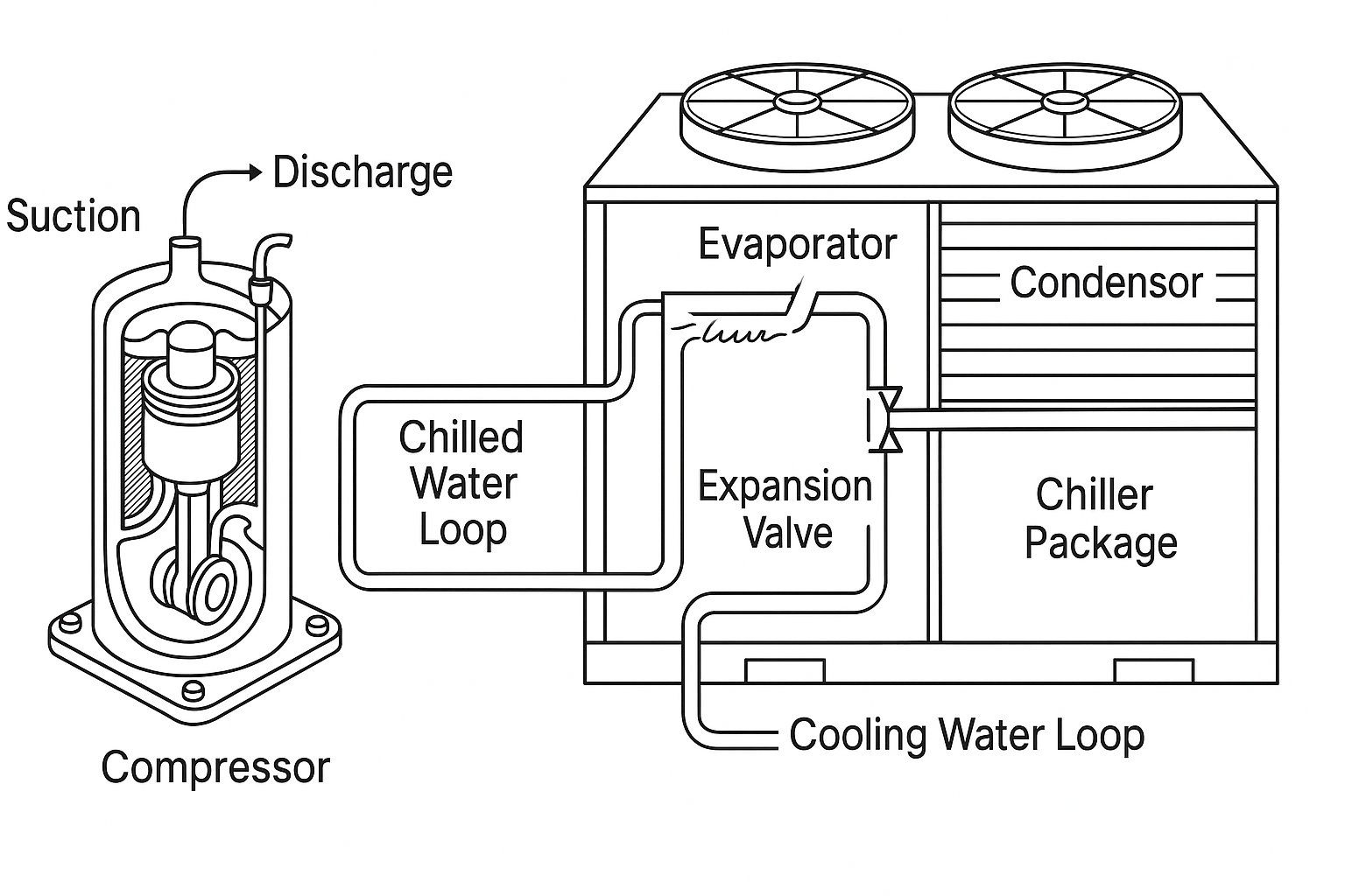 Scroll (Digital/VFD/EVI) | Recip (Discus) | مبردهای کم-GWP | مقایسه برندی | نکات پایپینگ/روغن/PM