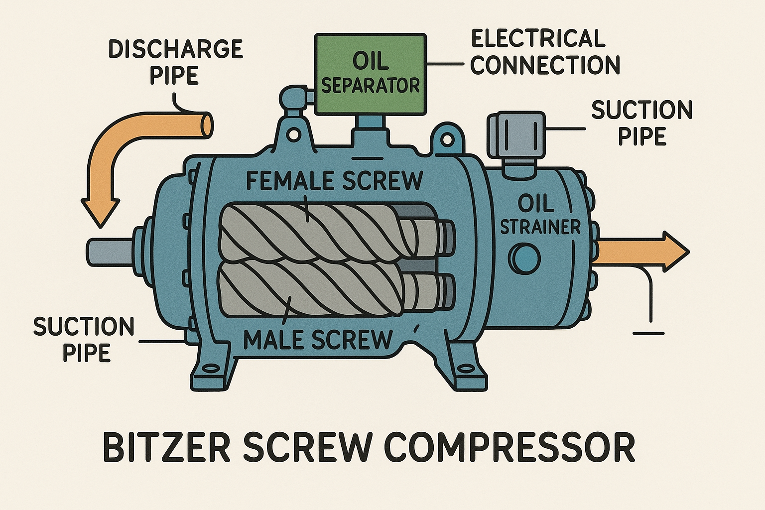 - نوع کمپرسور: Recip/Two-Stage برای کم/میانه؛ Screw برای بالا؛ CO₂ برای فروشگاهی مدرن.